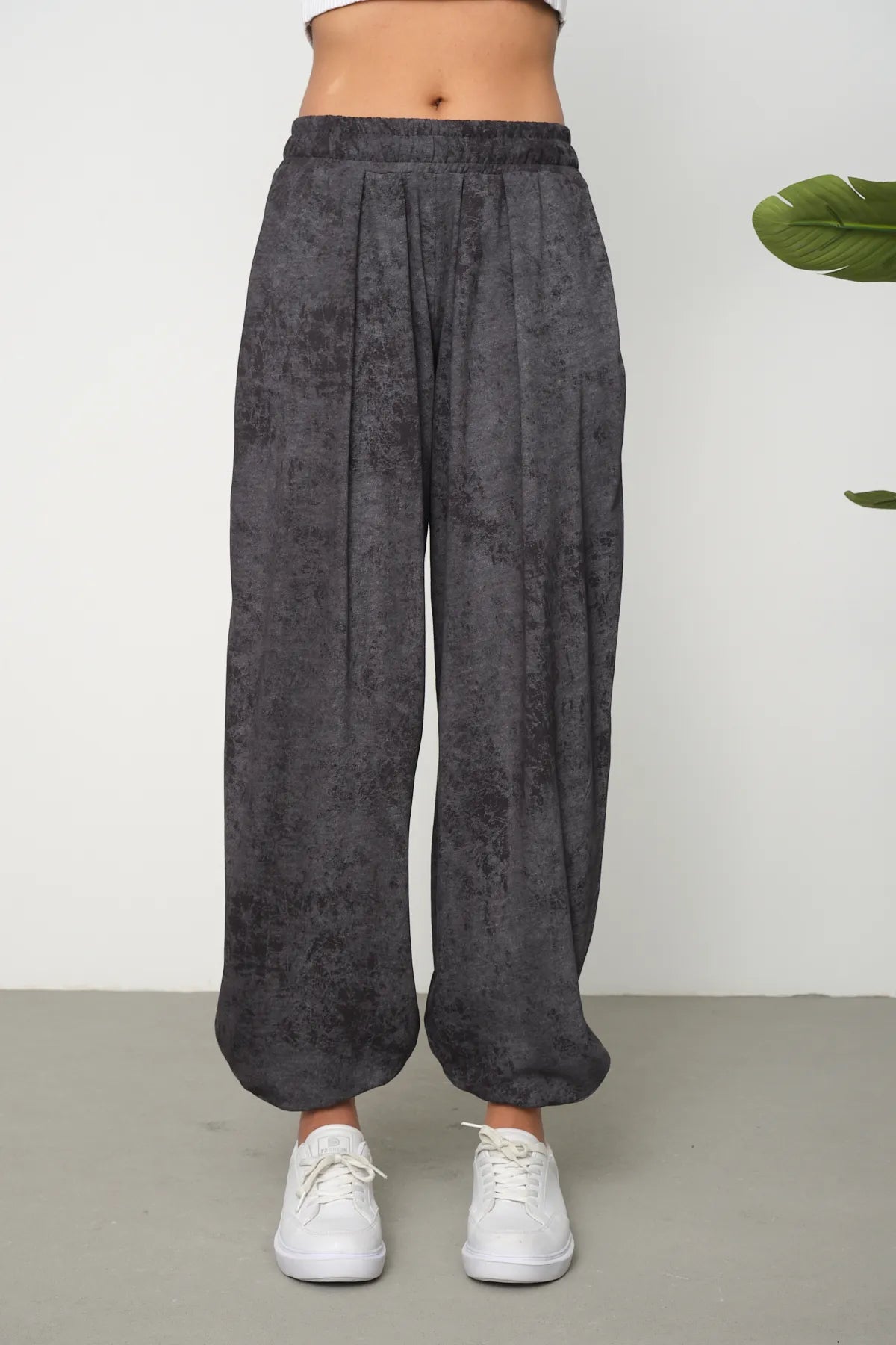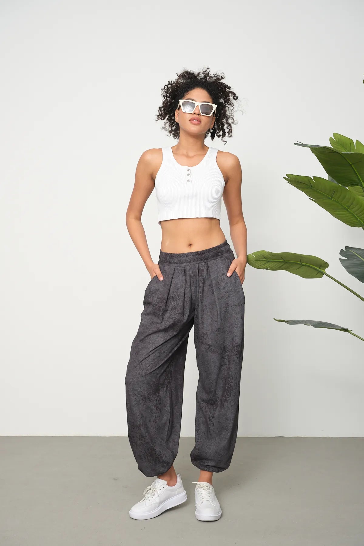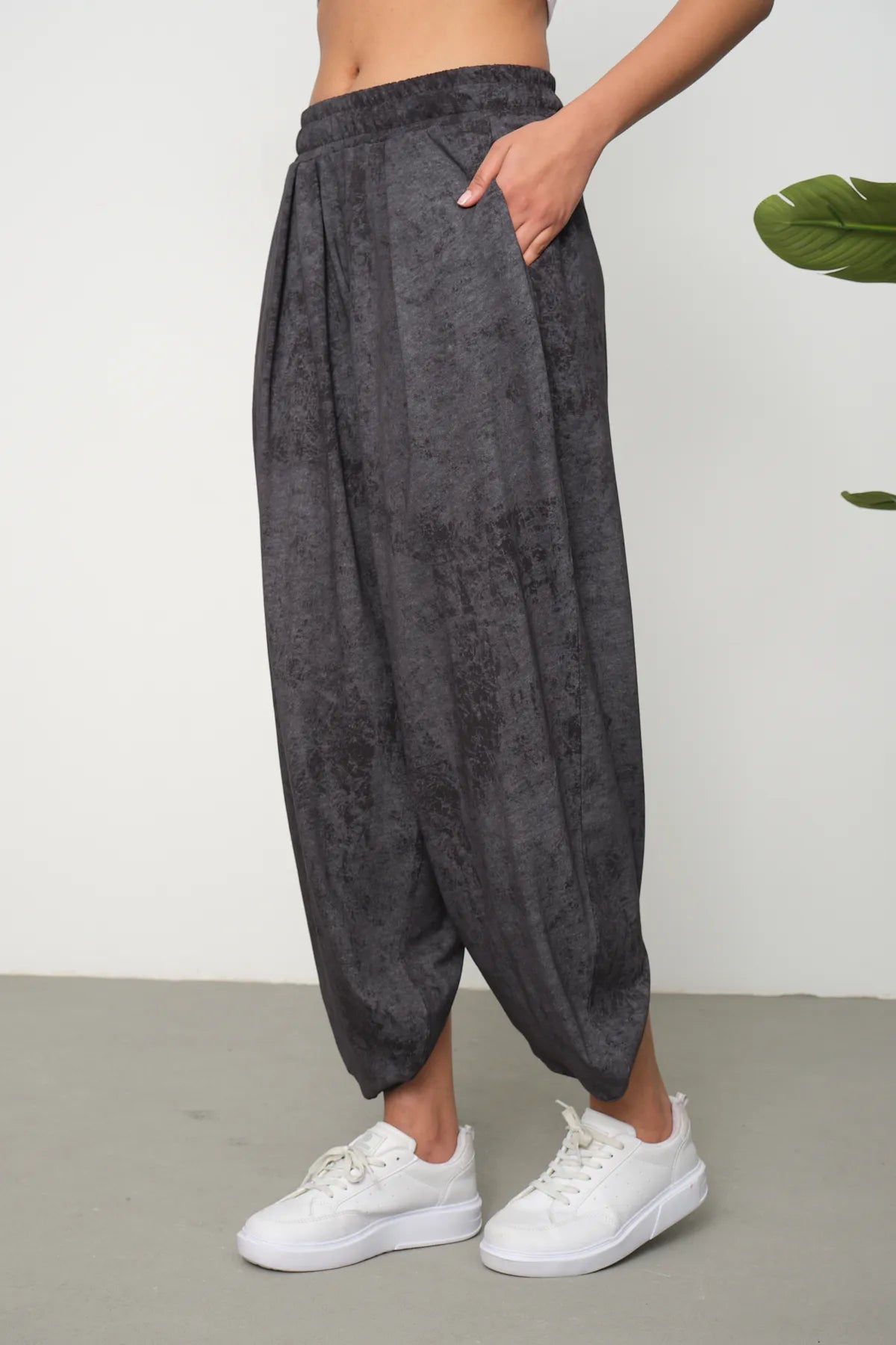 Kadın Cupra Kumaş Cepli Dökümlü Şalvar Pantolon - Antrasit