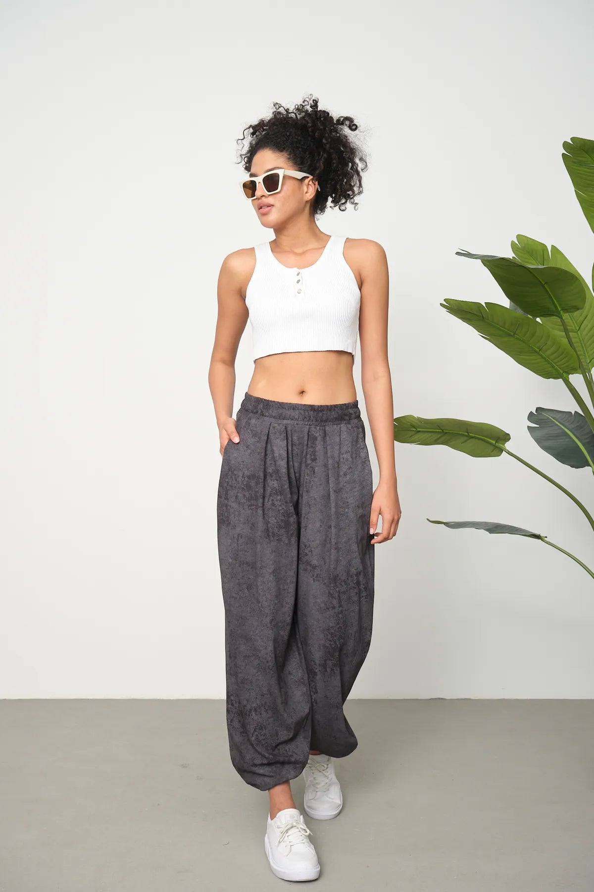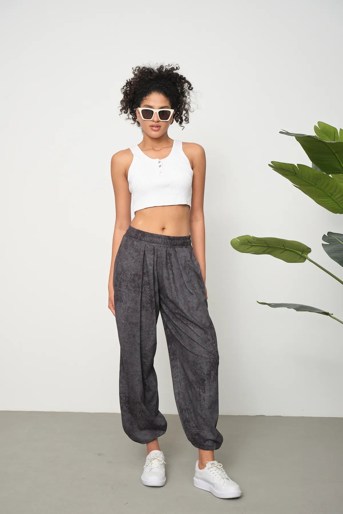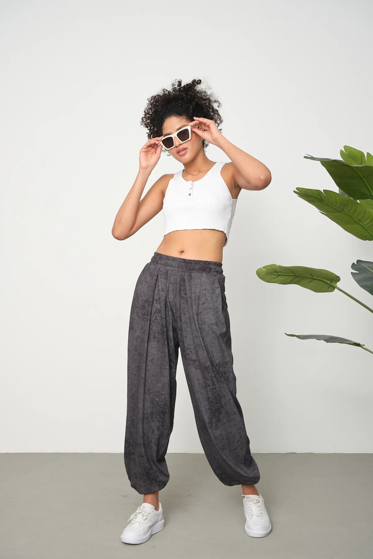 Kadın Cupra Kumaş Cepli Dökümlü Şalvar Pantolon - Antrasit