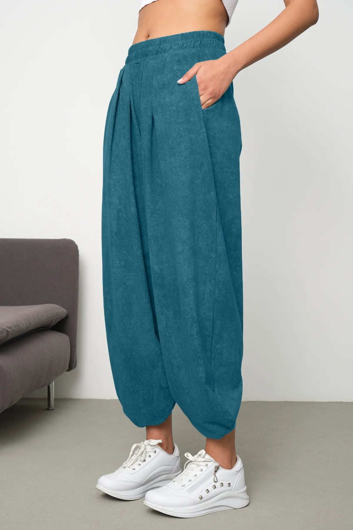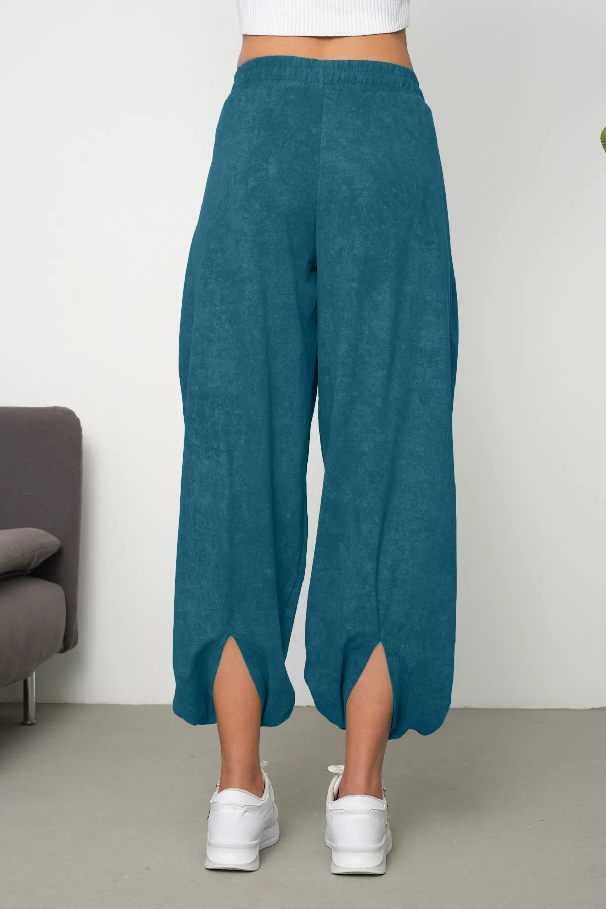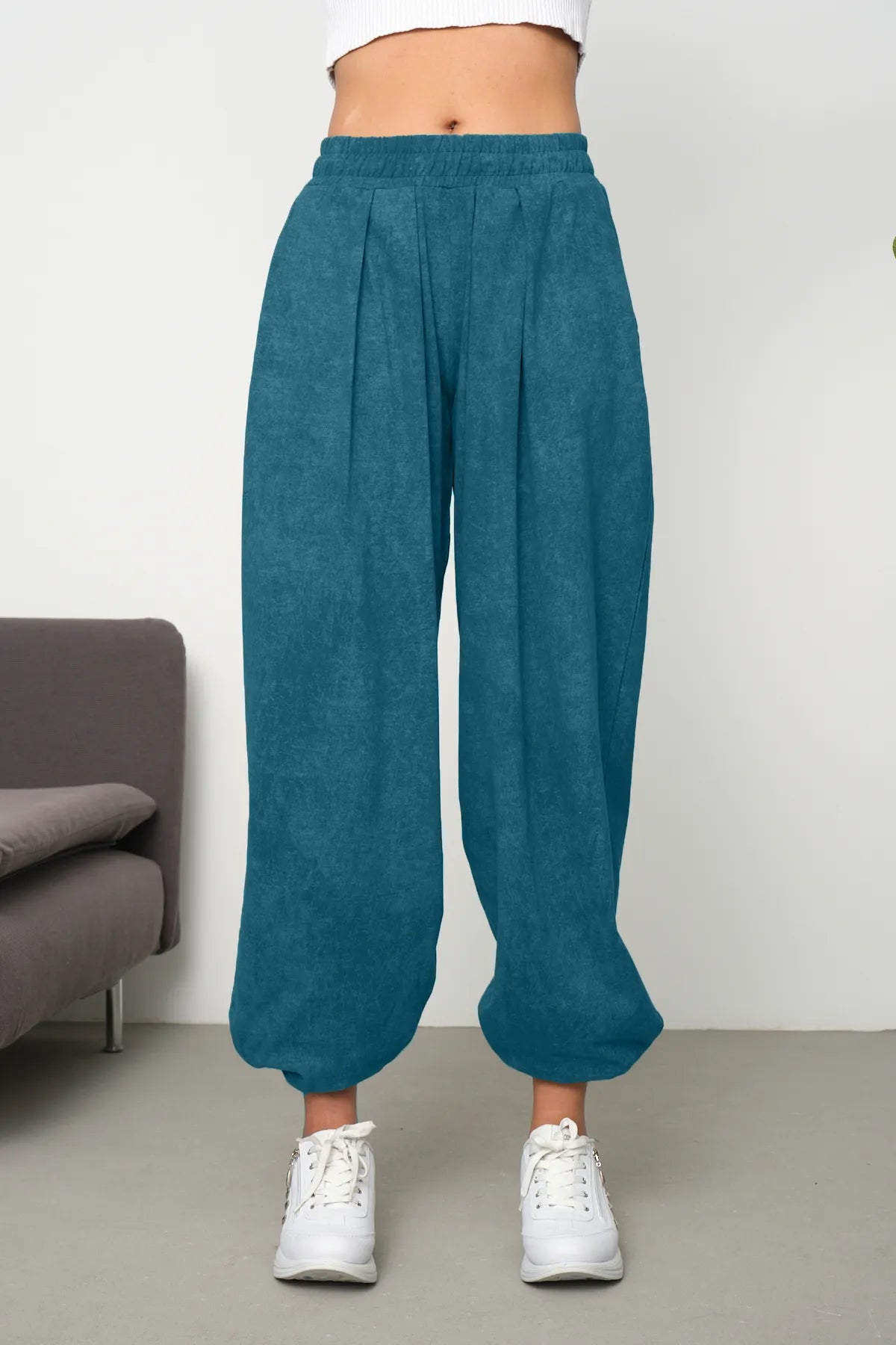 Kadın Cupra Kumaş Cepli Dökümlü Şalvar Pantolon - Petrol