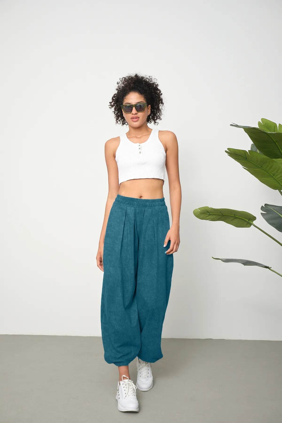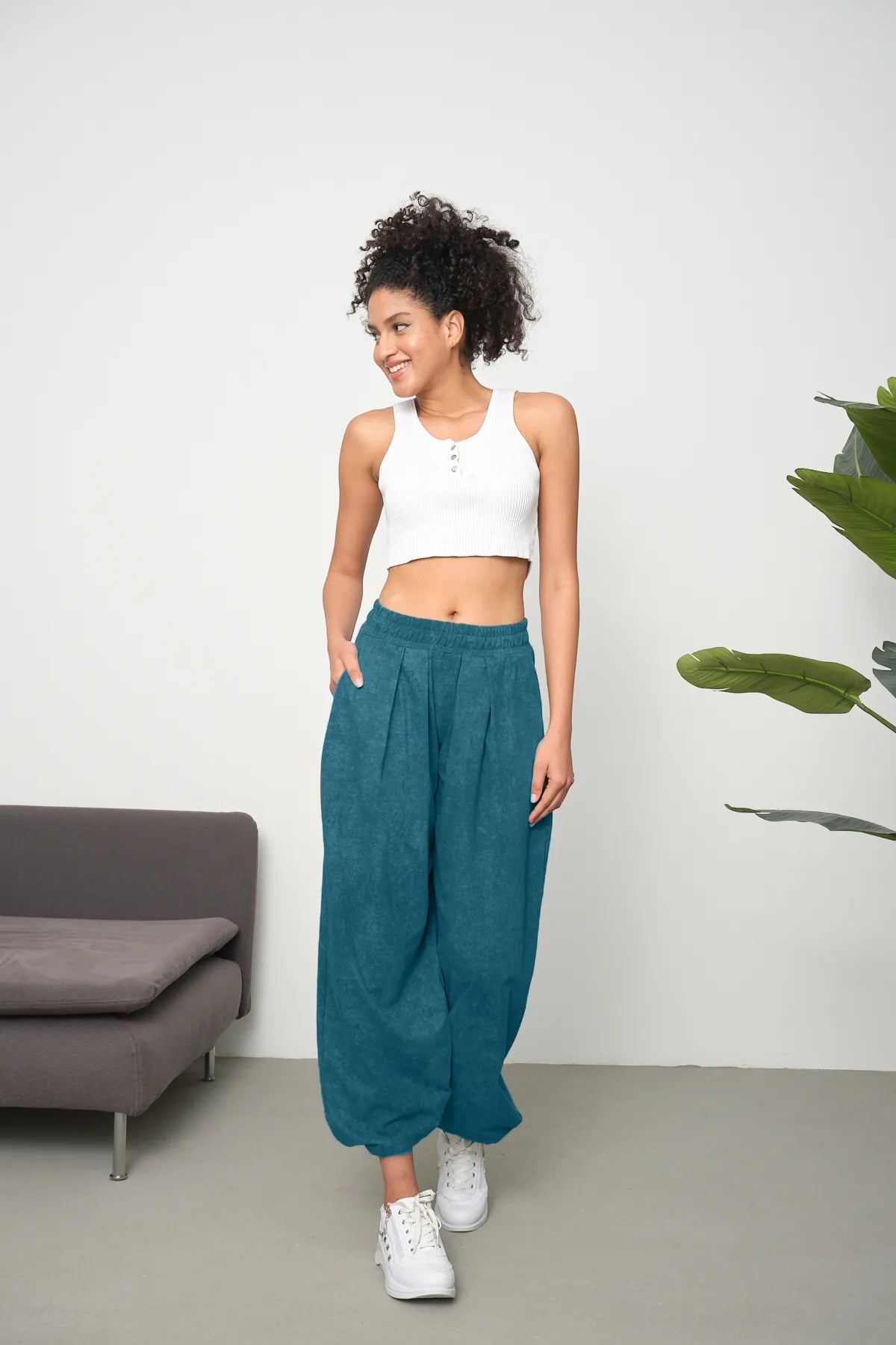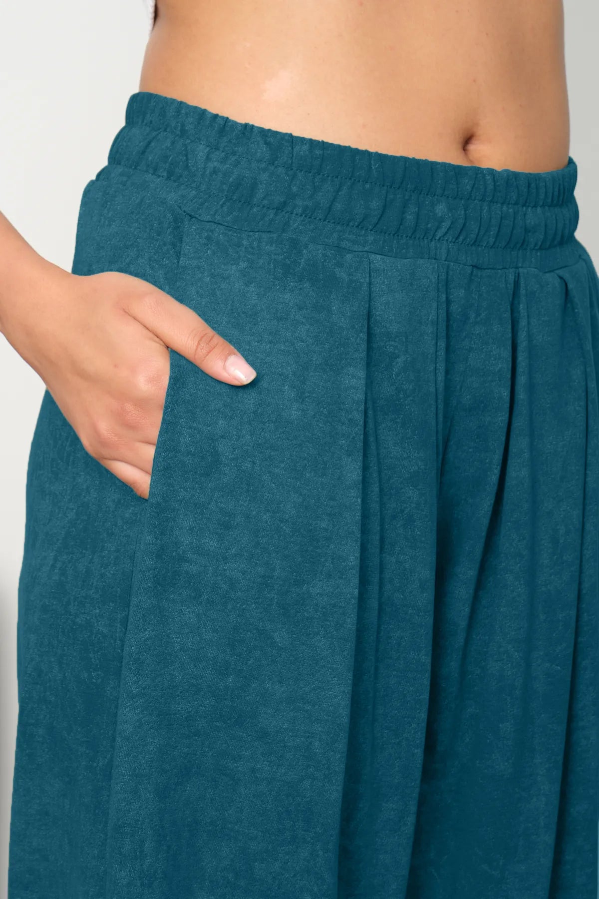 Kadın Cupra Kumaş Cepli Dökümlü Şalvar Pantolon - Petrol