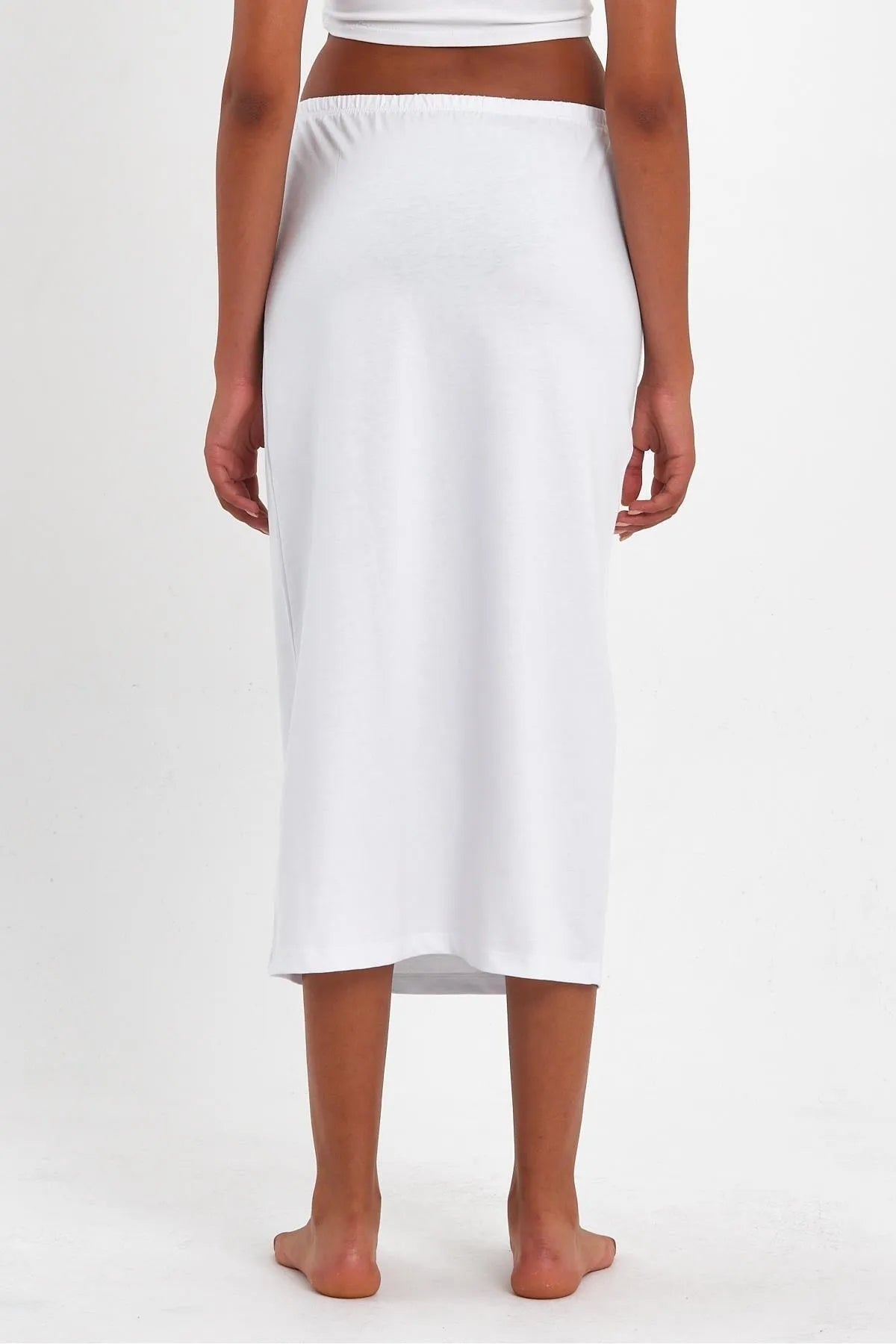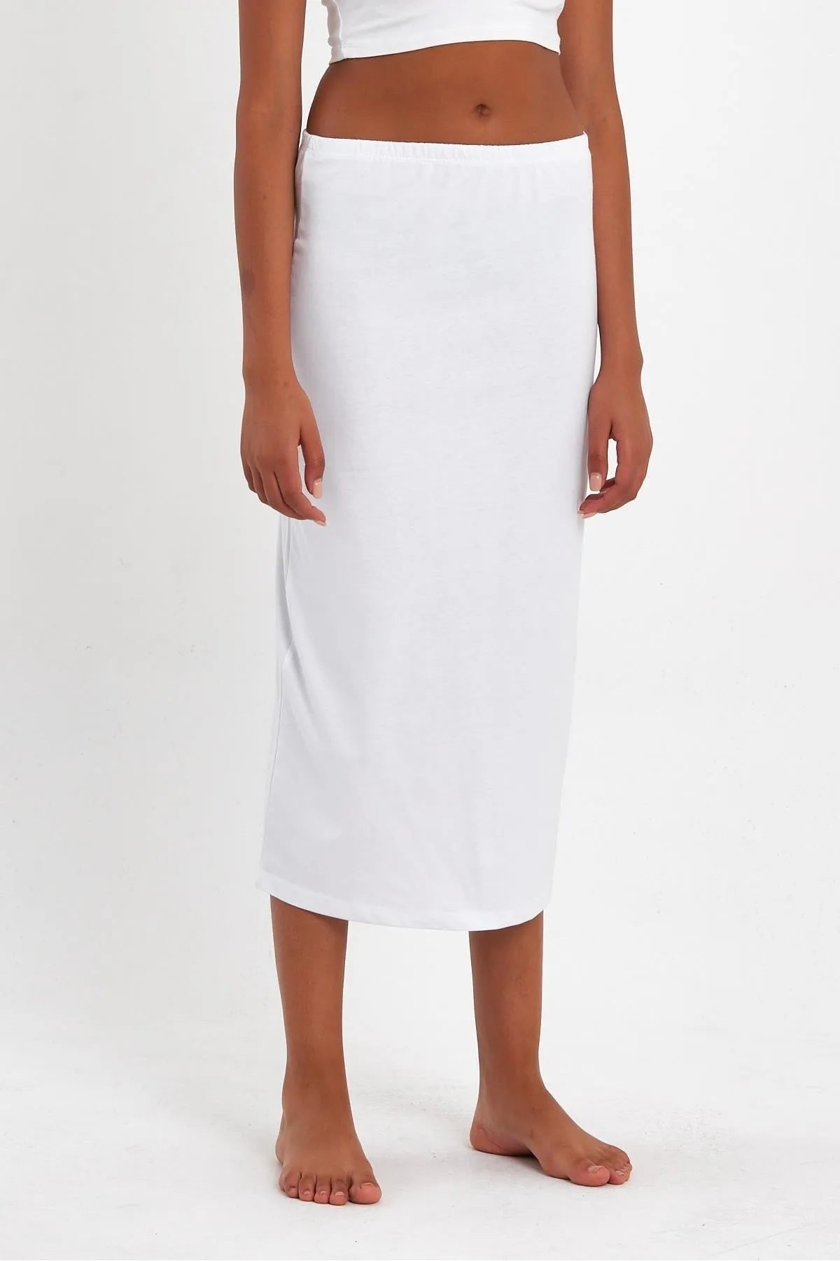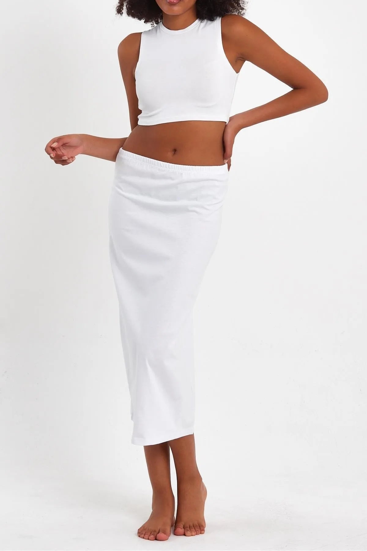 Uzun Beli Lastikli Etek Astarı İçlik Jüpon Kombinezon - Beyaz